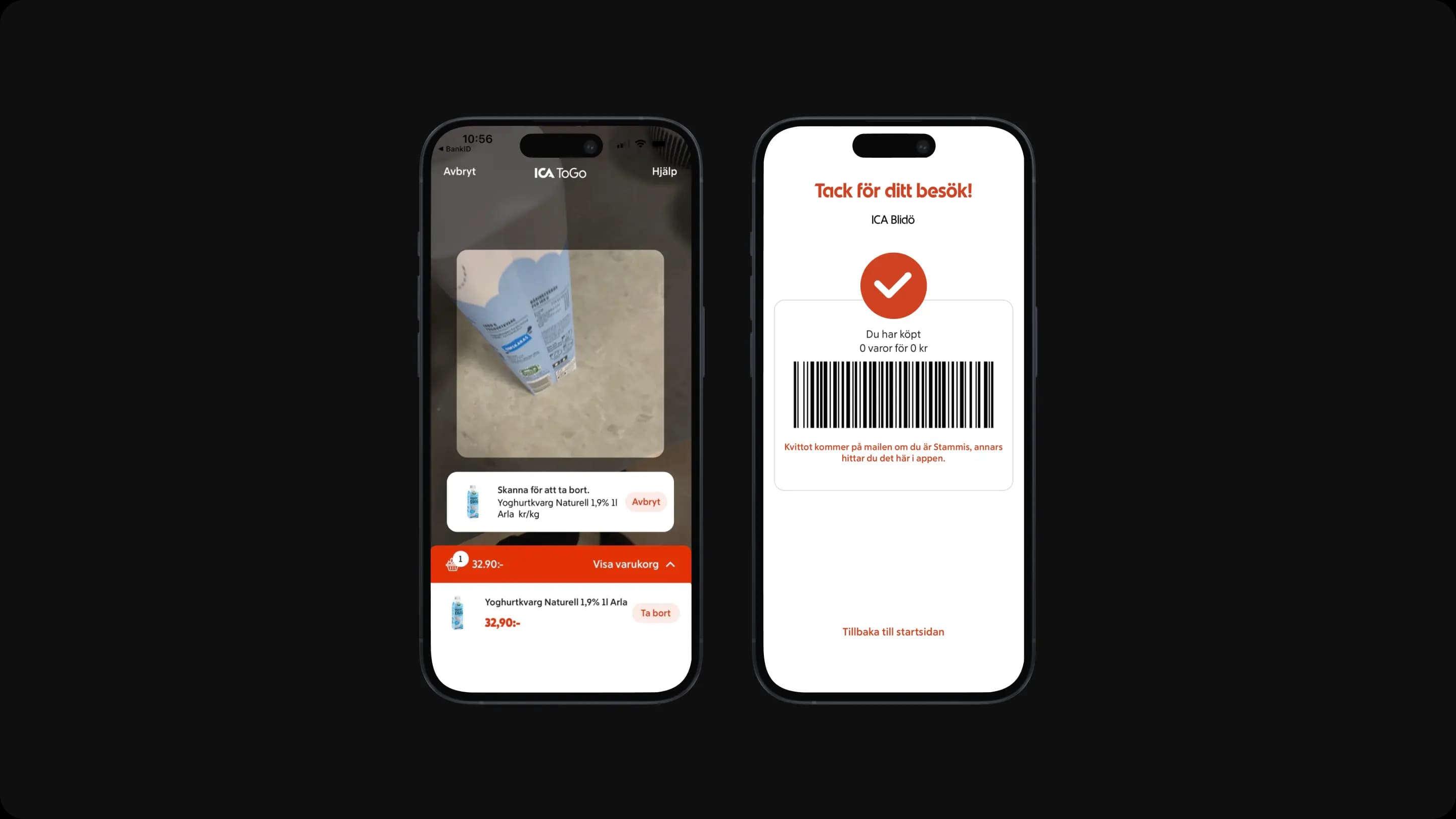 “Appen är helt avgörande för ICA ToGo-verksamheten. Funktionaliteten är viktig – BankID, skanna, betala – men det absolut mest avgörande är användarvänligheten. Att den är så lätt att använda gör att den obemannade köpupplevelsen blir sömlös.”